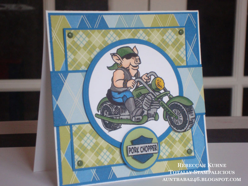 I used my Road Hawg stamp set for this manly card! Whenever I think manly Road Hawg always pops into mind! I colored him with copics, used pacific point cs, whisper white cs, certainly celery cs and SU dp.